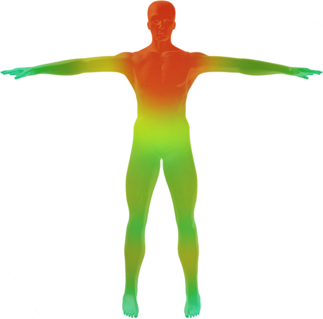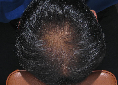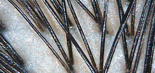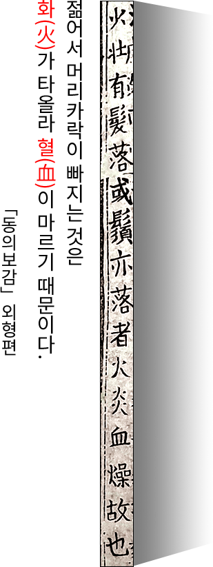 | 체열이 올라감에 따라 세포 대사가 빨라져 모발의 생존주기가 짧아짐. 점점 더 힘없고 가는 모발이 자라게 되며, 모발 개수 또한 감소됨. | 모발 | 모공당 2~3가닥으로 정상 굵기의 건강한 모발이 자람. |