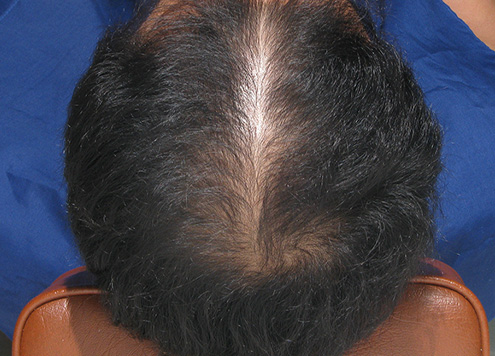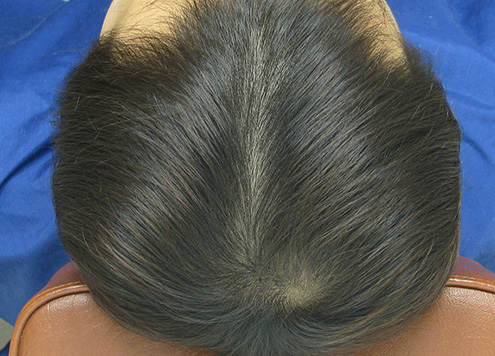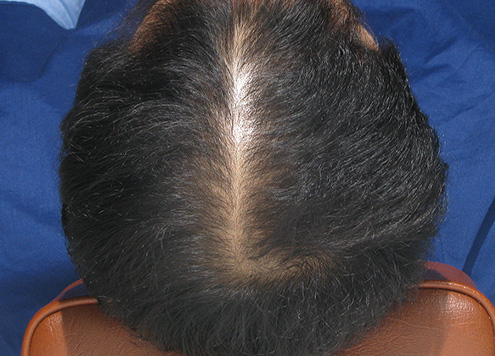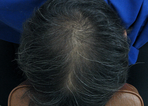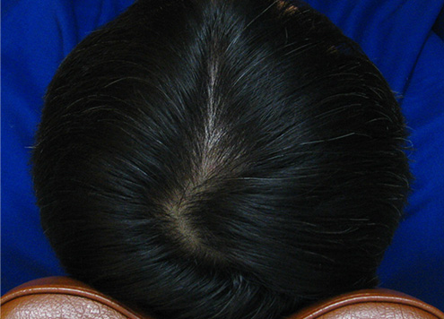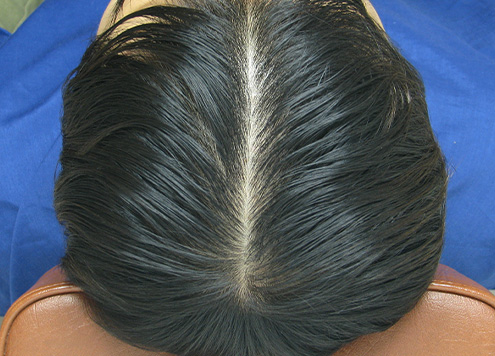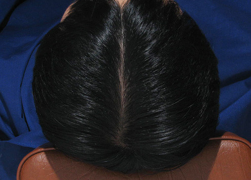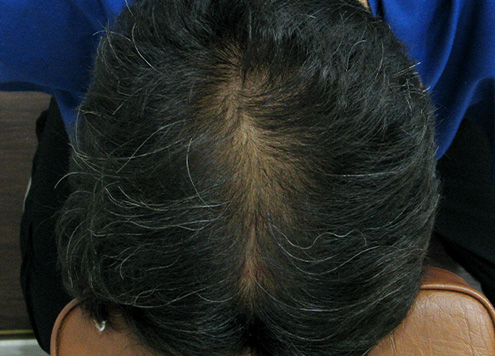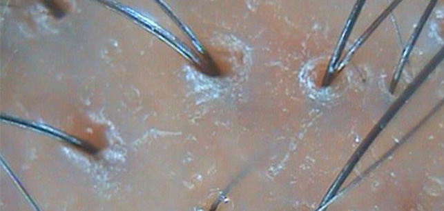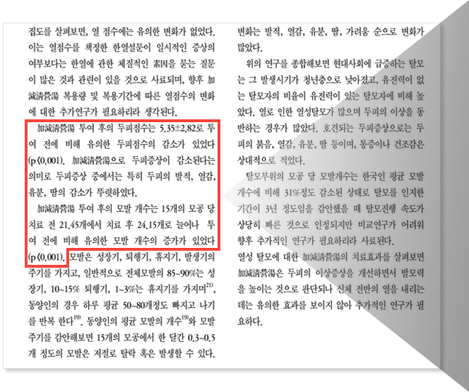 | 두피에 혈액이 정체되어 붉게 충혈됨. 피부 건조로 각질이 일어나기도 함. | 두피가 희고 깨끗함. |